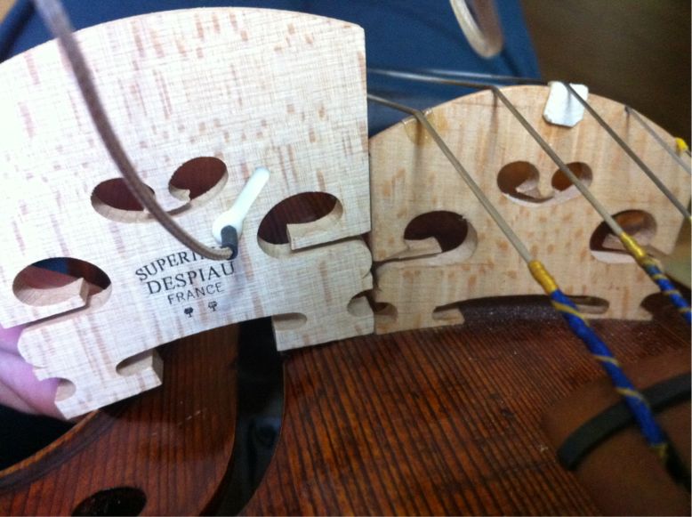 ヴァイオリンを分解。 魂柱を倒さないように駒を外して。。。